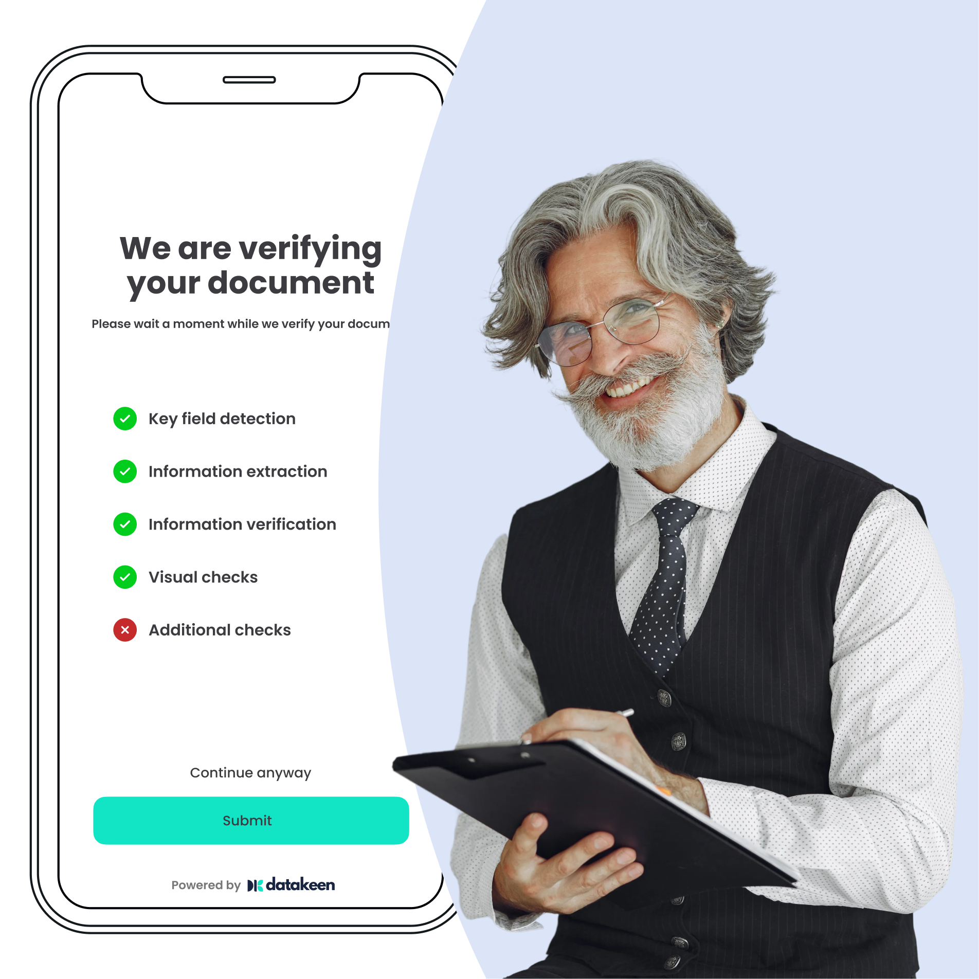 Perform an identity check and receive a decision in seconds using AI.